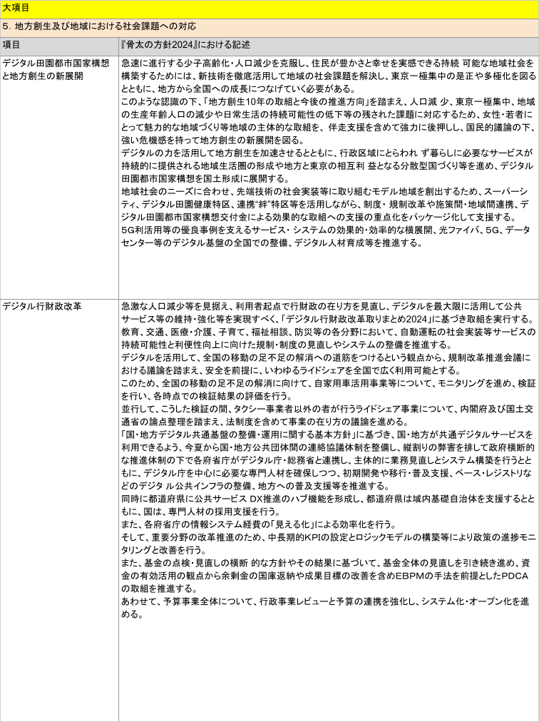 「5.地方創生及び地域における社会課題への対応 / (1)デジタル田園都市国家構想と地方創生の新展開、(2)デジタル行財政改革 」