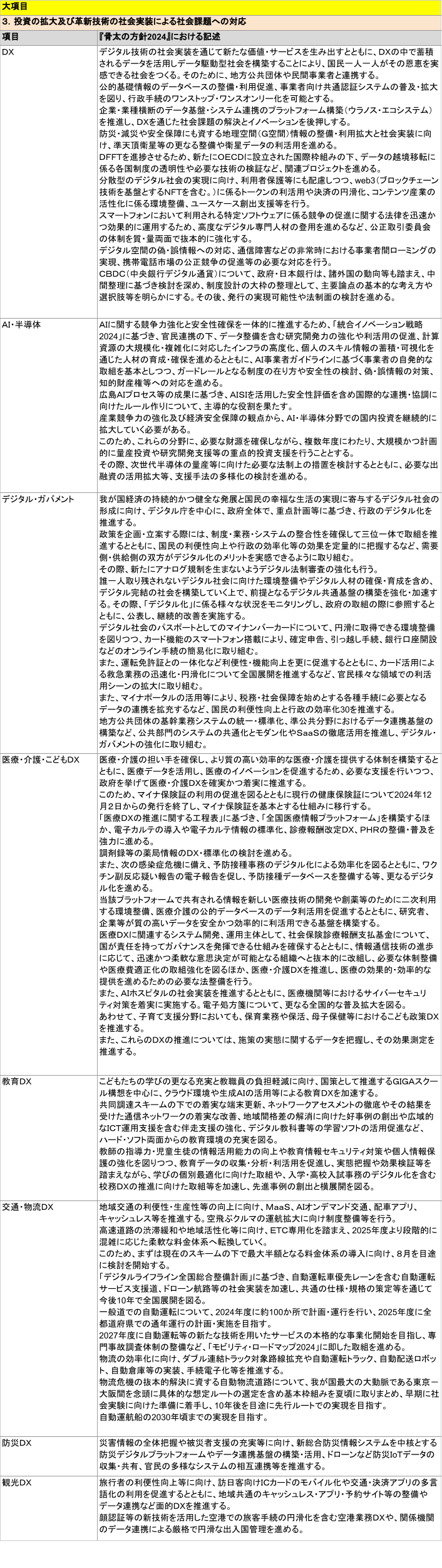 「3.投資の拡大及び革新技術の社会実装による社会課題への対応 / (1) DX 」の項目