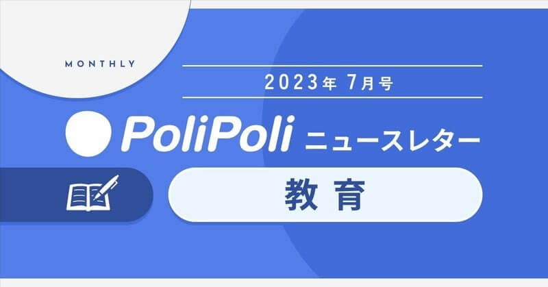 政策共創プラットフォーム『PoliPoli』( https://polipoli-web.com/ )を運営する事務局が、2023年7月の「教育」に関する注目ニュースをお届けします!