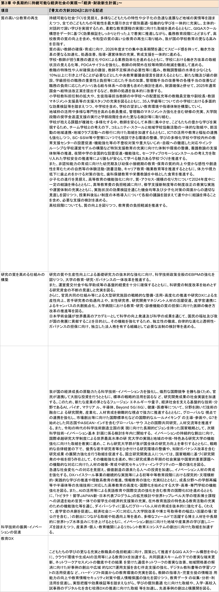 『骨太の方針2024』における教育政策の記述